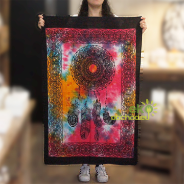 Bavlnený nástenný záves s dizajnom Lapač Snov z Indie je skutočné umeleckým dielom.