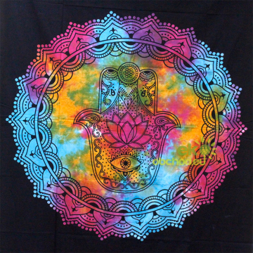 Dvojlôžková bavlnená prikrývka + Záves na Stenu, Peacock Mandala, Červeno-modrá