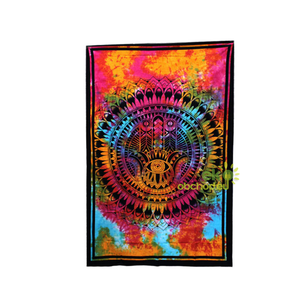 Dvojlôžková bavlnená prikrývka + Záves na Stenu, Hamsa, modro-zlatá