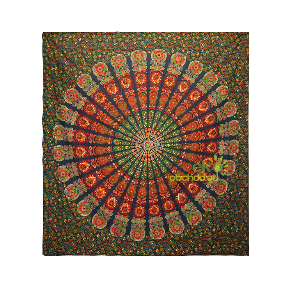 Dvojlôžková bavlnená prikrývka + Záves na Stenu - Peacock Mandala - Fialová