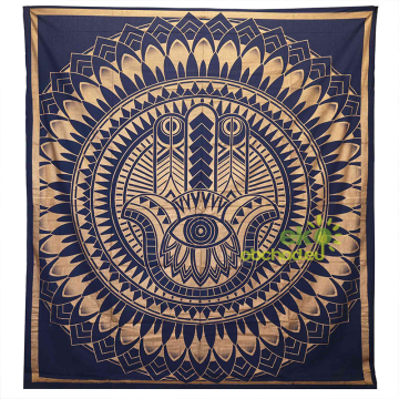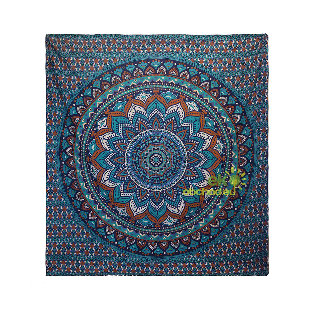 Dvojlôžková bavlnená prikrývka + Záves na Stenu, Mandala, Tyrkysová