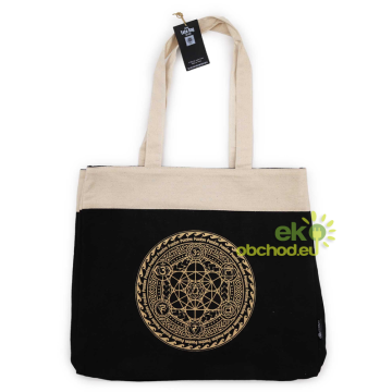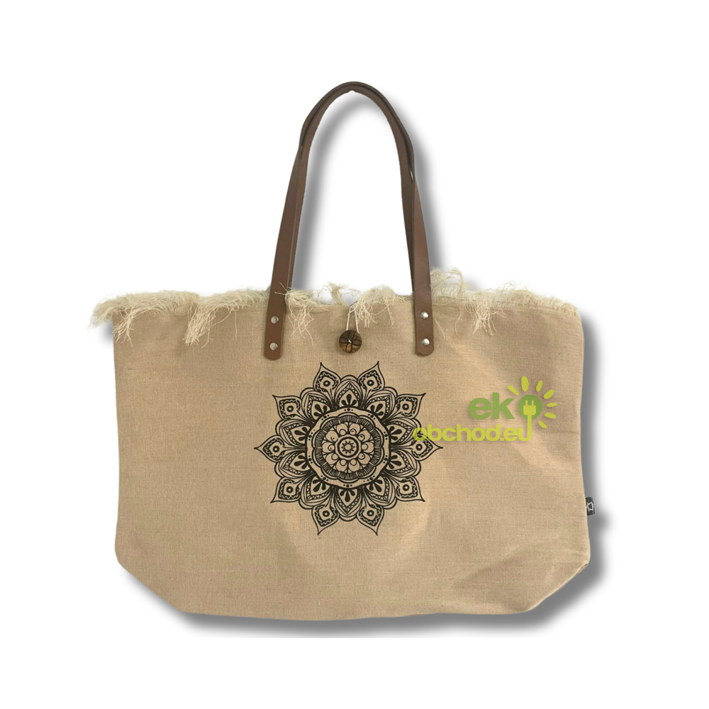 Prírodná Taška s Koženými Rukoväťami - Mandala