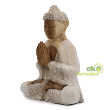 Ručne Vyrezávaná Socha Budhu - 30cm Vitajte - Biela Vymývaná