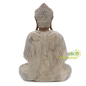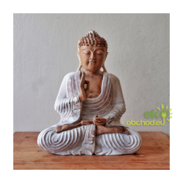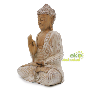 Ručne Vyrezávaná Socha Budhu - 40cm Prenos Výučby - Biela Vymývaná