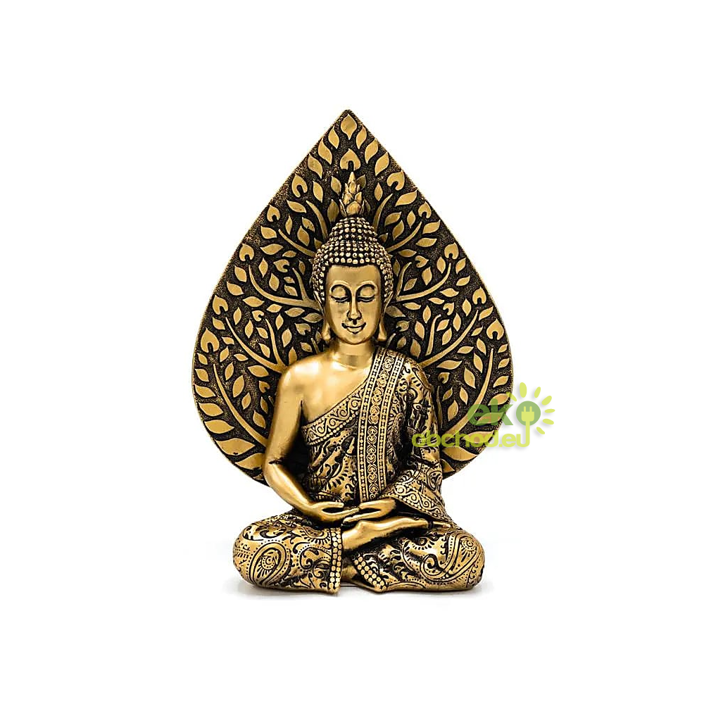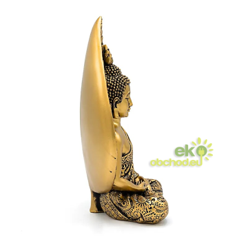 Soška Budha na meditáciu s listom Bodhi, zlatá, 17 cm, polyresin