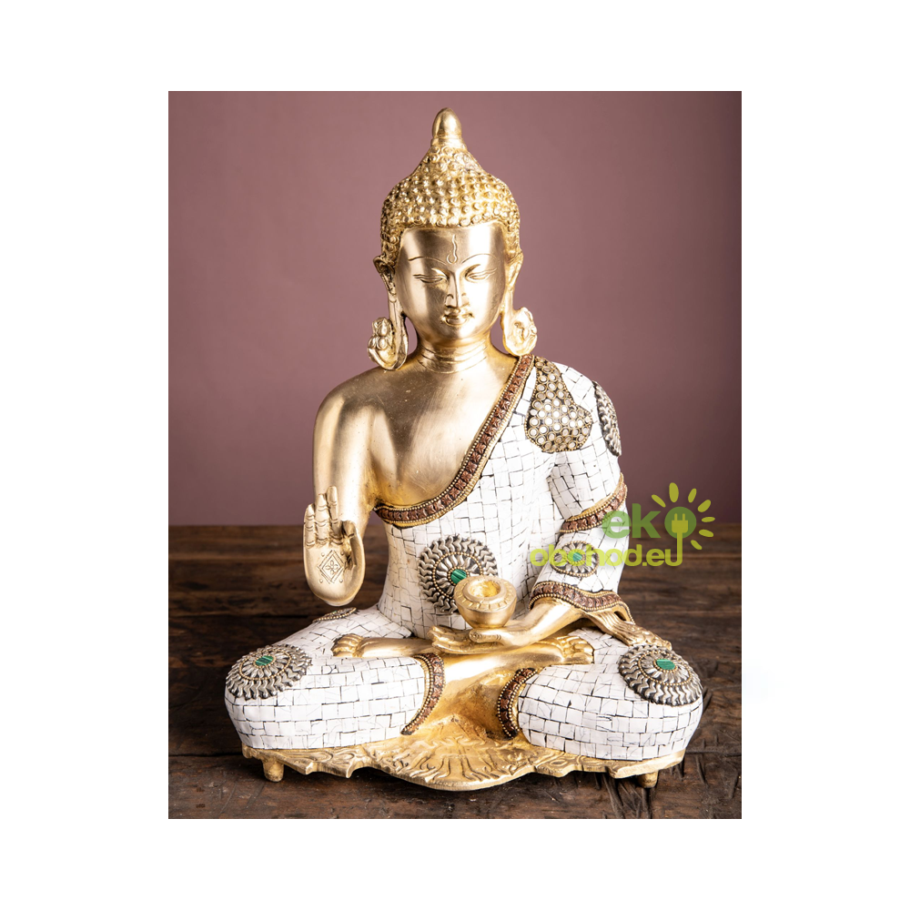 - Detailné vypracovanie: Tento kov umožňuje zachytiť aj tie najjemnejšie detaily – od pokojného výrazu tváre až po symbolické gestá rúk (mudry).
