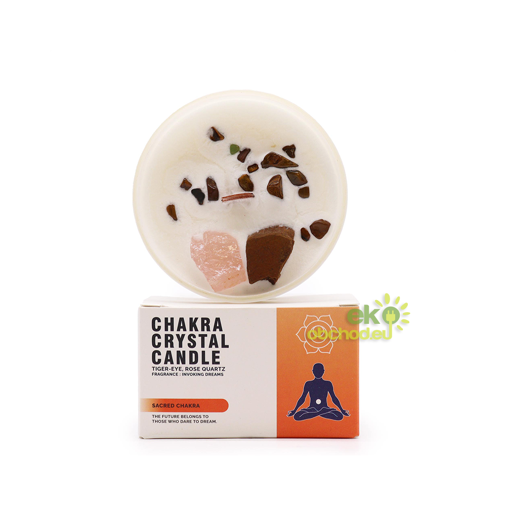 Zapáľte svoju tvorivú a vášnivú energiu so sviečkou sakrálnej čakry. Doplnená o dynamickú kombináciu Tigrieho oka a Ruženínu, ktorá rezonuje s esenciou sakrálnej čakry. Vôňa "Invoking Dreams" vás obklopuje a inšpiruje vaše najvnútornejšie túžby.