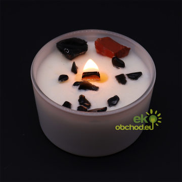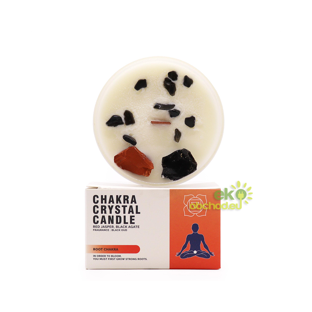 Čakrová sviečka - červený jaspis a čierny achát - koreňová čakra