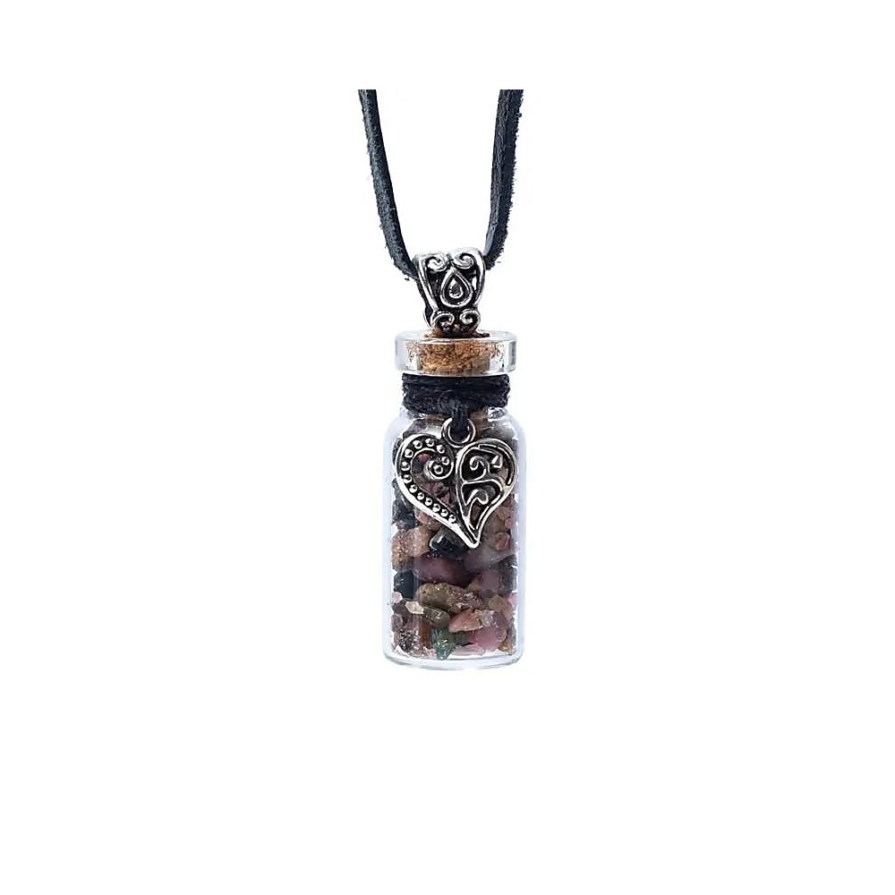 Sklenená darčeková fľaštička na koženej šnúrke. Ak chcete oživiť váš priestor, zaveste ho v obývacej izbe alebo ho použite ako náhrdelník.