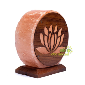 Krištáľová soľná lampa s podstavcom a lotosom z akáciového dreva