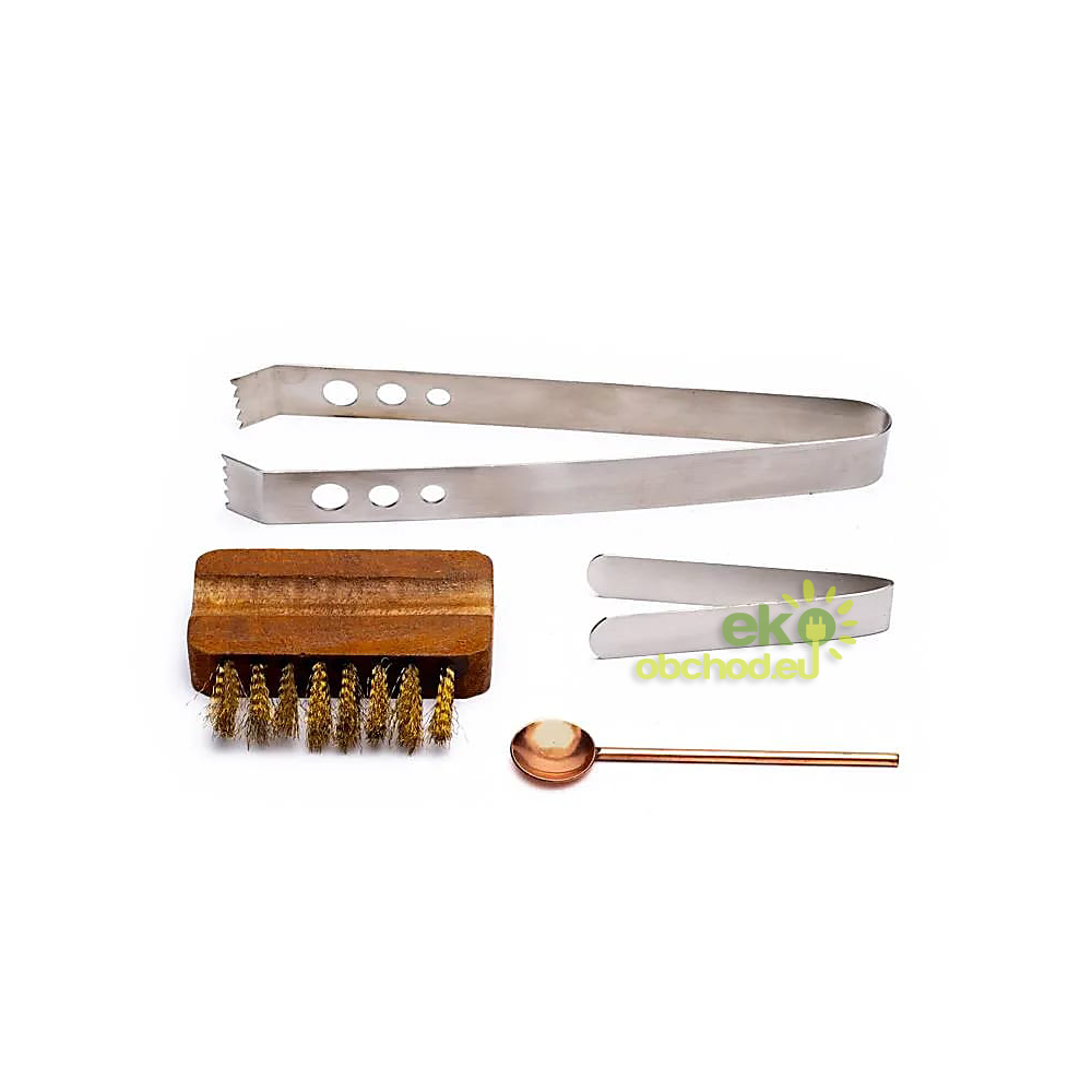 ID produktu: 3609Praktická sada pomôcok na vykurovanie. Sada obsahuje dvoje kliešte, medenú lyžičku a kefu.