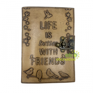 Kožený Zápisník - Obyčajný Papier – Life is Better with Friends – Svetlohnedý