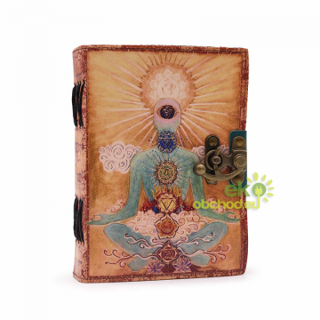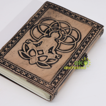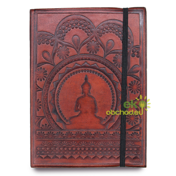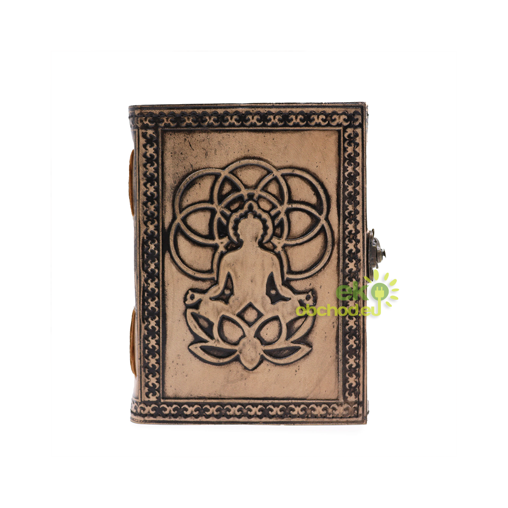 Kožený Zápisník – Budha - 17,5 x 12,5 cm, svetlohnedý