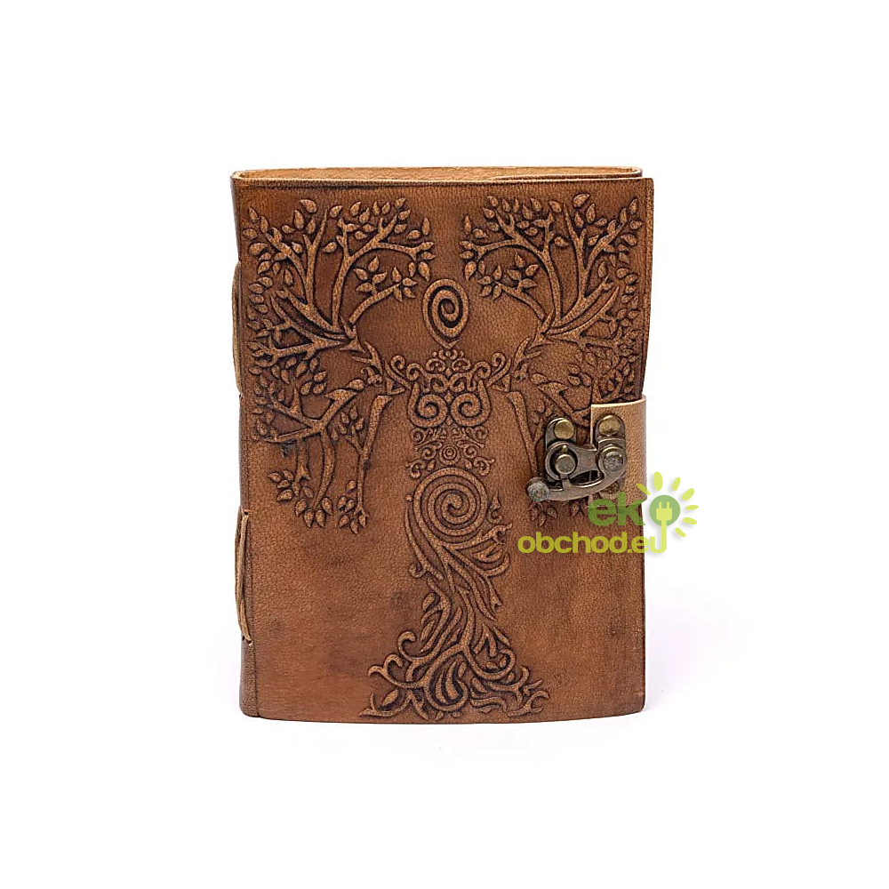 Kožený Zápisník 18x13 - Goddess & Tree of Life (čisté strany)