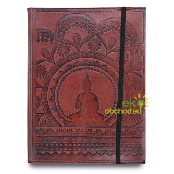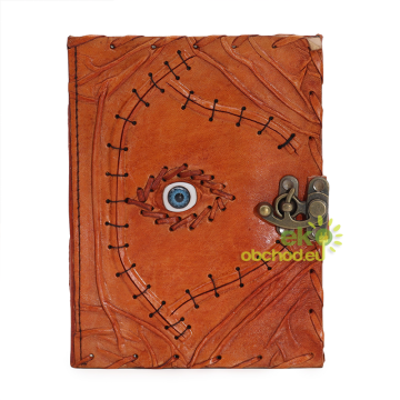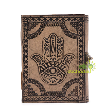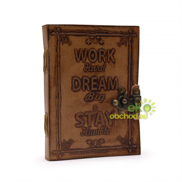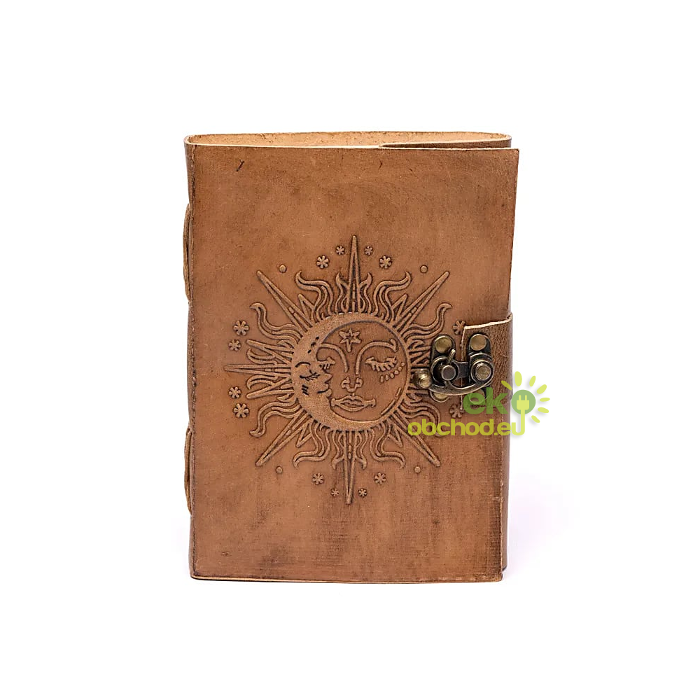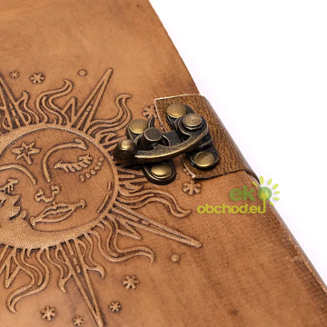 Kožený zápisník na poznámky alebo ako skicár, vyrobený z recyklovaného papiera. So 100 prázdnymi stranami + kovovým zapínaním.