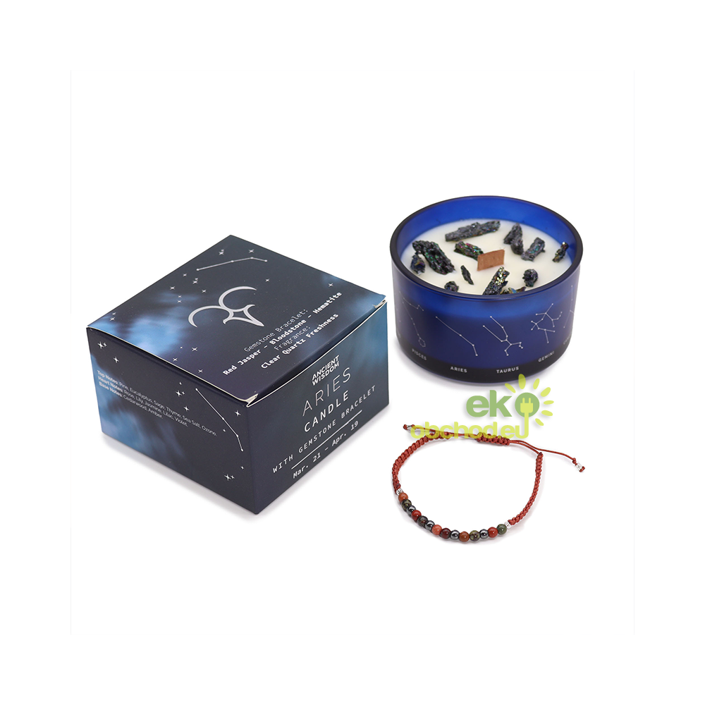 Baran - Krištáľová Sviečka Znamenie Zverokruhu s Náramkom z Drahokamov