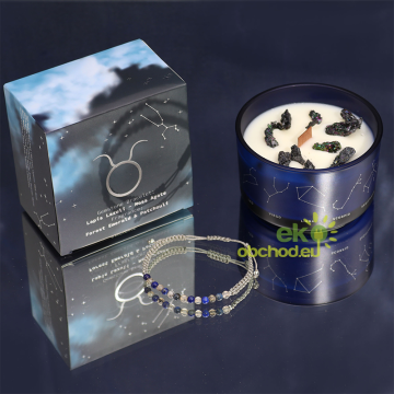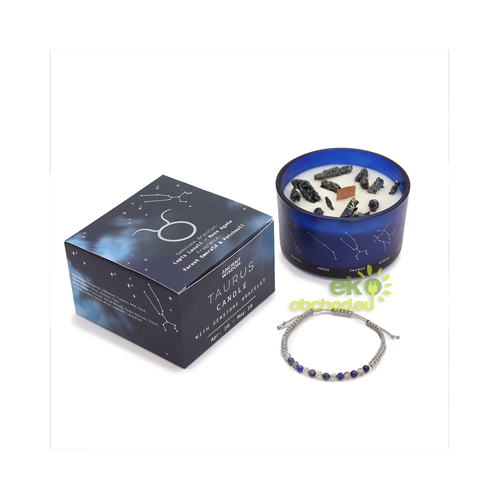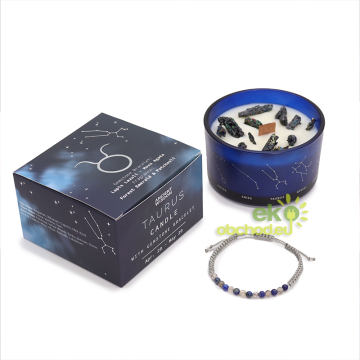 Býk - Krištáľová Sviečka Znamenie Zverokruhu s Náramkom z Drahokamov