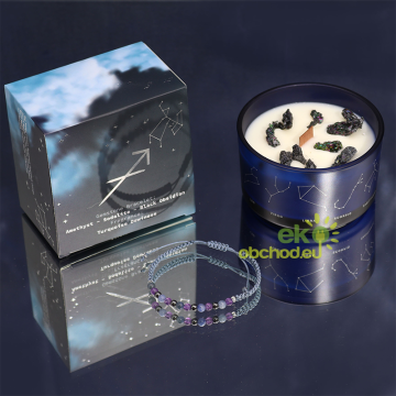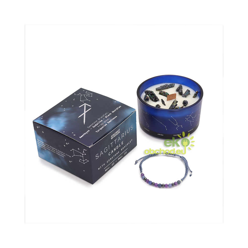 Strelec - Krištáľová Sviečka Znamenie Zverokruhu s Náramkom z Drahokamov