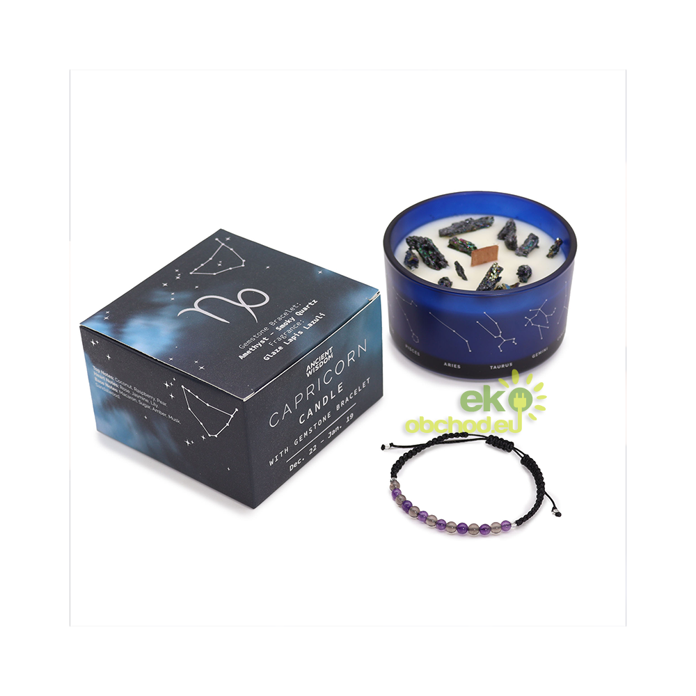 Kozorožec - Krištáľová Sviečka Znamenie Zverokruhu s Náramkom z Drahokamov