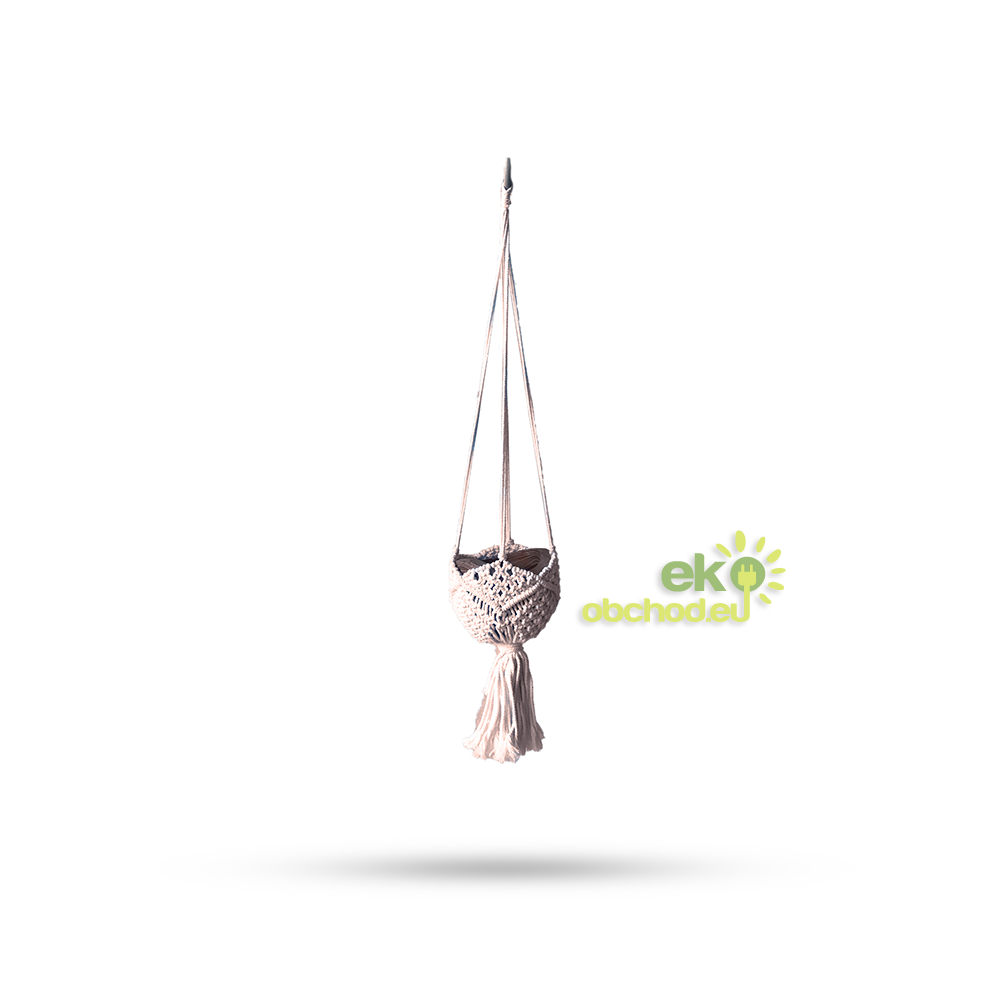 Makramé držiak dlhý 75 cm poskytuje dostatok priestoru na vystavenie plazivých rastlín, ako sú pothos, filodendrony alebo určité sukulenty. Keďže črepník nie je súčasťou balenia, môžete si prispôsobiť vzhľad výberom rôznych kvetináčov, ktoré dopĺňajú béžovú farbu držiaka a zvýrazňujú ich existujúci dekor.