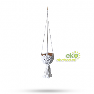 Doprajte si lásku k boho štýlu s týmto krásnym, makramé závesným držiakom na kvetináč! Tento držiak na rastliny, ručne vyrobený v Indonézii, sa vyznačuje zložitým makramé viazaním, ktoré dodáva nádych nadčasovej elegancie. Tento všestranný kúsok je dokonalým doplnkom k rôznym štýlom domácej dekorácie, najmä k tým, ktoré majú moderný bohémsky vzhľad.