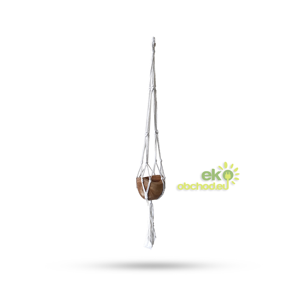 Makramé držiak dlhý 75 cm poskytuje dostatok priestoru na vystavenie plazivých rastlín, ako sú pothos, filodendrony alebo určité sukulenty. Keďže črepník nie je súčasťou balenia, môžete si prispôsobiť vzhľad výberom rôznych stredne veľkých kvetináčov, ktoré dopĺňajú prírodnú farbu držiaka a zvýrazňujú ich existujúci dekor.