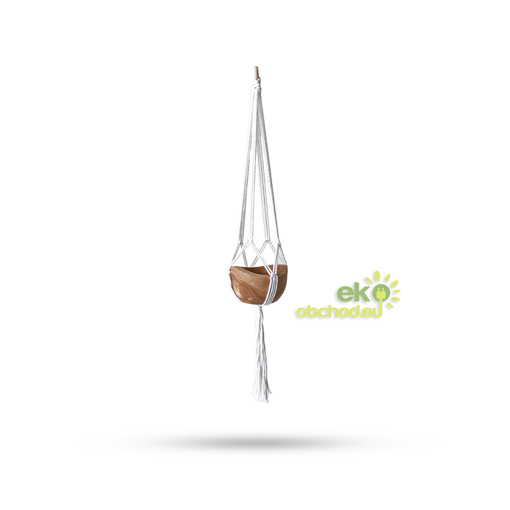 Makramé držiak dlhý 75 cm poskytuje dostatok priestoru na vystavenie plazivých rastlín, ako sú pothos, filodendrony alebo určité sukulenty. Keďže črepník nie je súčasťou balenia, môžete si prispôsobiť vzhľad výberom rôznych veľkých kvetináčov, ktoré dopĺňajú prírodnú farbu držiaka a zvýrazňujú ich existujúci dekor.