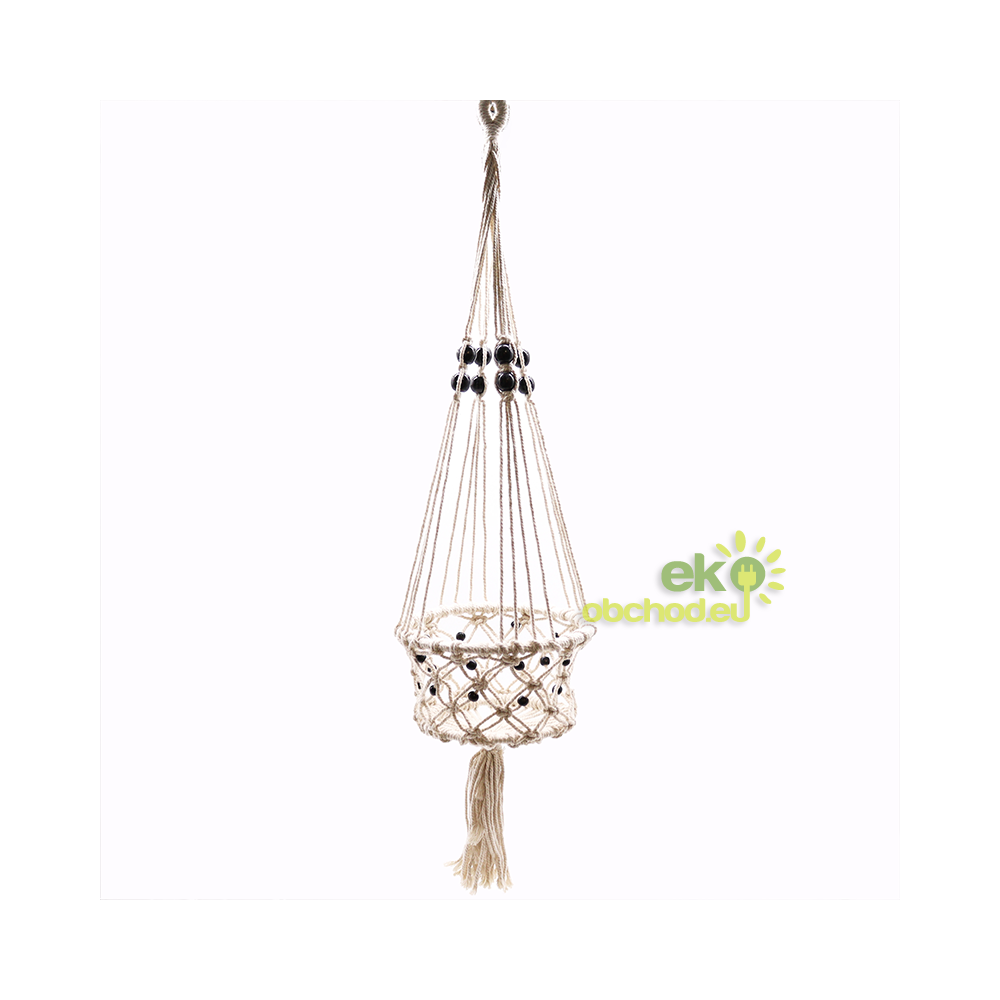 Je vyrobený z vysoko kvalitných materiálov a je vyrobený tak, aby vydržal. Zložité viazanie zaisťuje bezpečné umiestnenie kvetináčov. Pozdvihnite svoje rastlinky na vyššiu úroveň. Vhodné do akéhokoľvek priestoru kde chcete navodiť boho atmosféru.