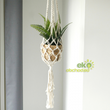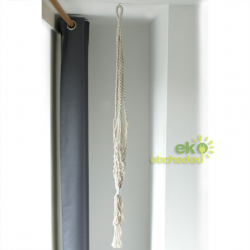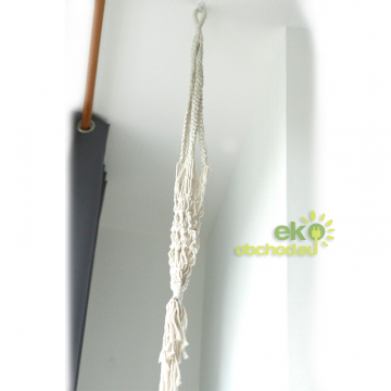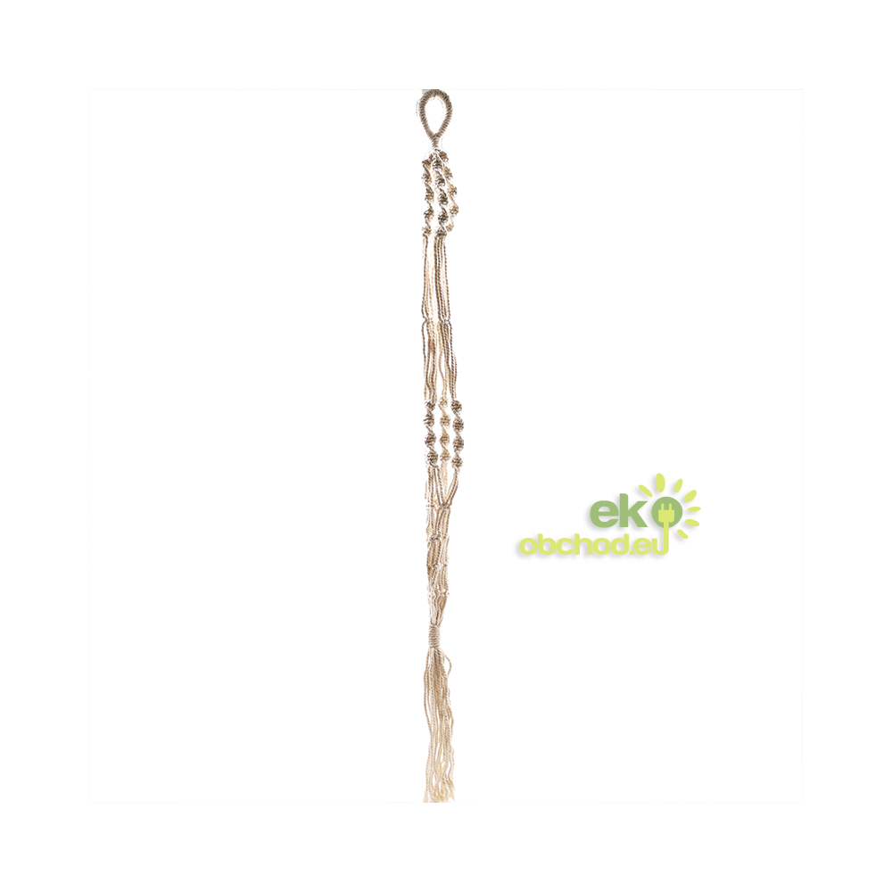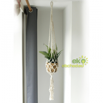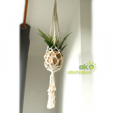 Doprajte si lásku k boho štýlu s týmto krásnym, makramé závesným držiakom na kvetináč! Tento držiak na rastliny, ručne vyrobený v Indonézii, sa vyznačuje zložitým makramé viazaním, ktoré dodáva nádych nadčasovej elegancie. Tento všestranný kúsok je dokonalým doplnkom k rôznym štýlom domácej dekorácie, najmä k tým, ktoré majú moderný bohémsky vzhľad.