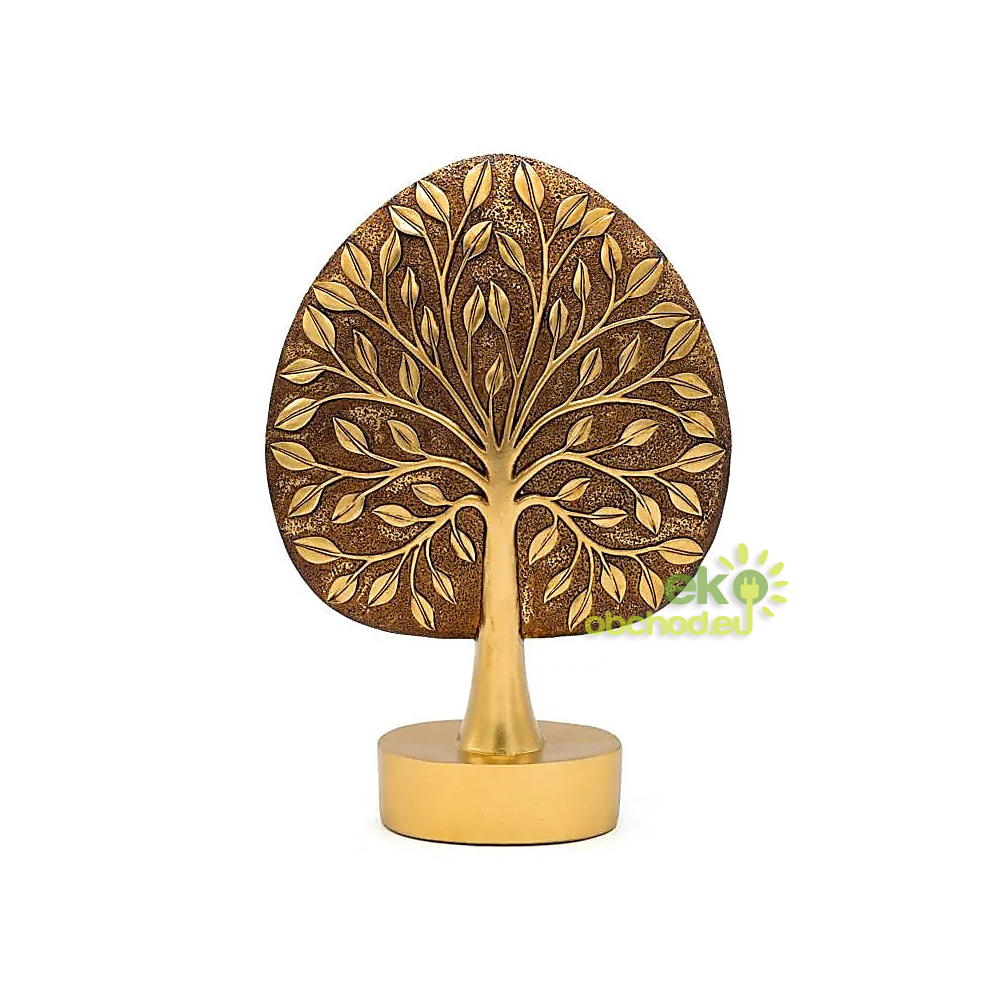ID produktu: 4901Zlatá dekorácia Strom života z odolnej polyresinovej živice s prepracovanými detailmi na konároch a listoch.