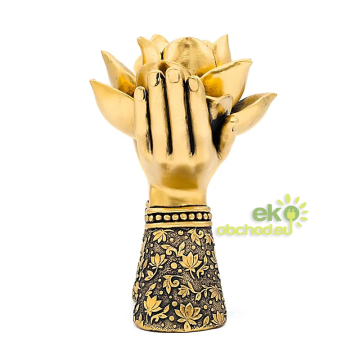 ID produktu: 5161Zlatý svietnik na čajové sviečky v tvare rúk držiacich lotos.