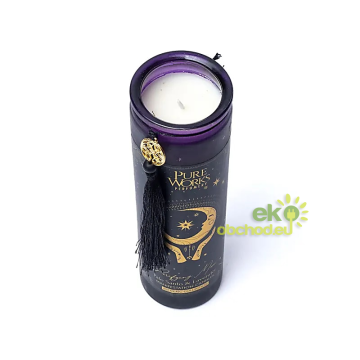 Manifestačná sviečka Purifying Moon v skle so strapcom - Palo Santo a levanduľa