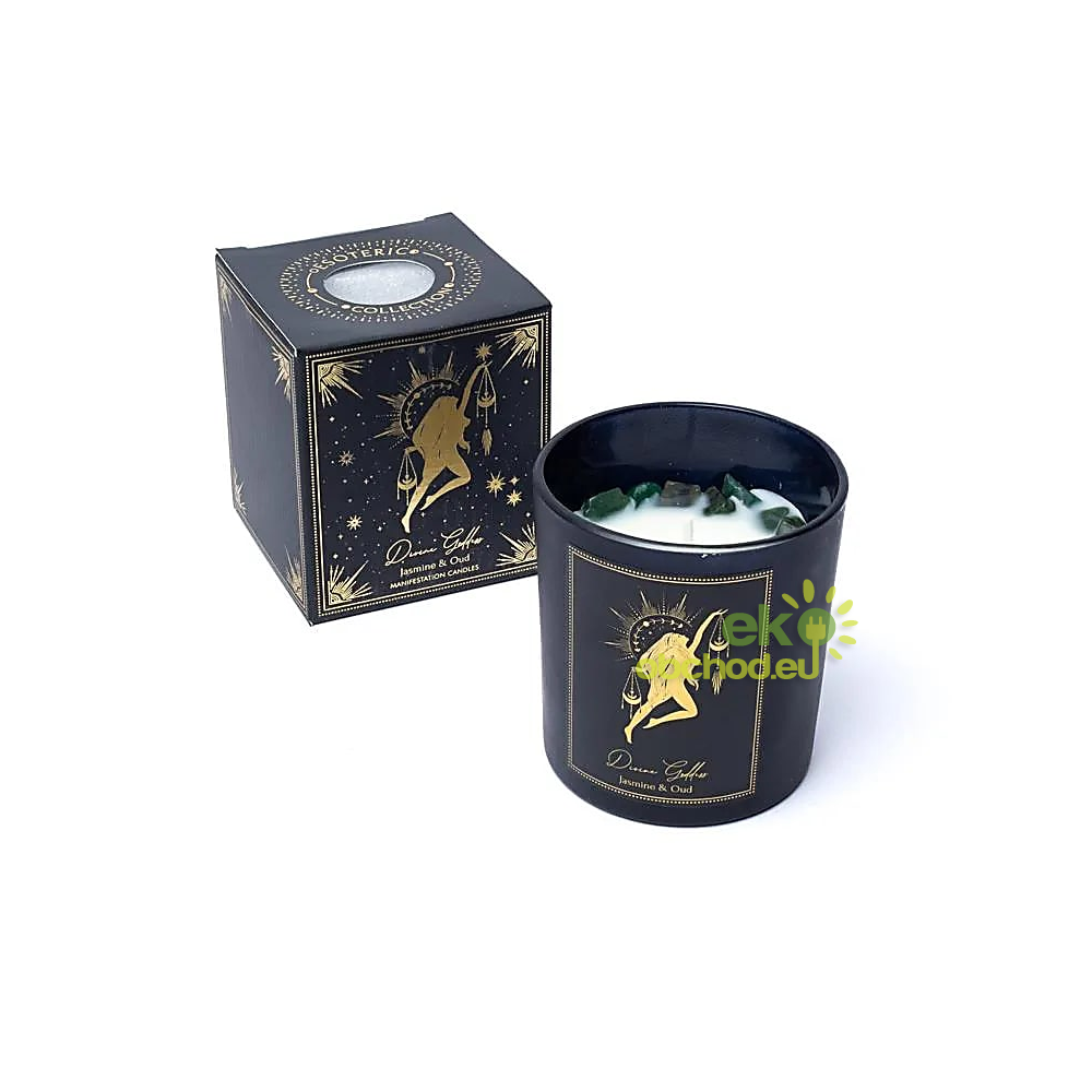 Manifestačná sviečka Divine Goddess s kryštálmi v skle - Jazmín a Oud