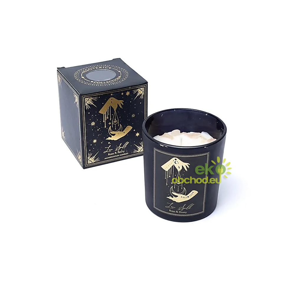 Manifestačná sviečka Love Spell s kryštálmi v skle - Ruža a pivónia