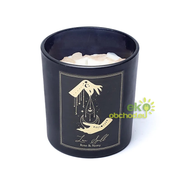 Materiál sviečky: sójový a palmový vosk, esenciálne oleje, sklo, kryštály ruženínu