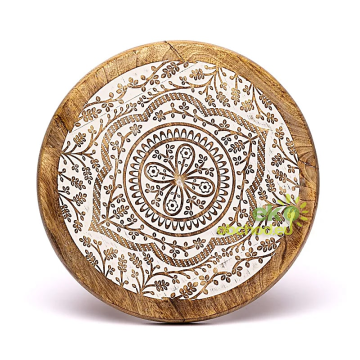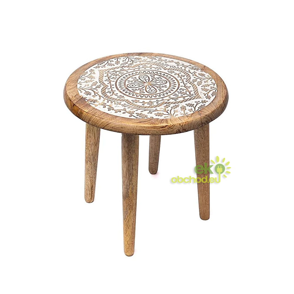 Drevený príručný stolík - biela mandala, mangové drevo