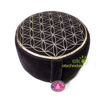 ID produktu: 2945Meditačný vankúš typu zafu s vyšívaným lotosovým kvetom a symbolom ÓM. Rozmery: 33 cm priemer, 13 cm výška. Farba: čierno / fialová.
