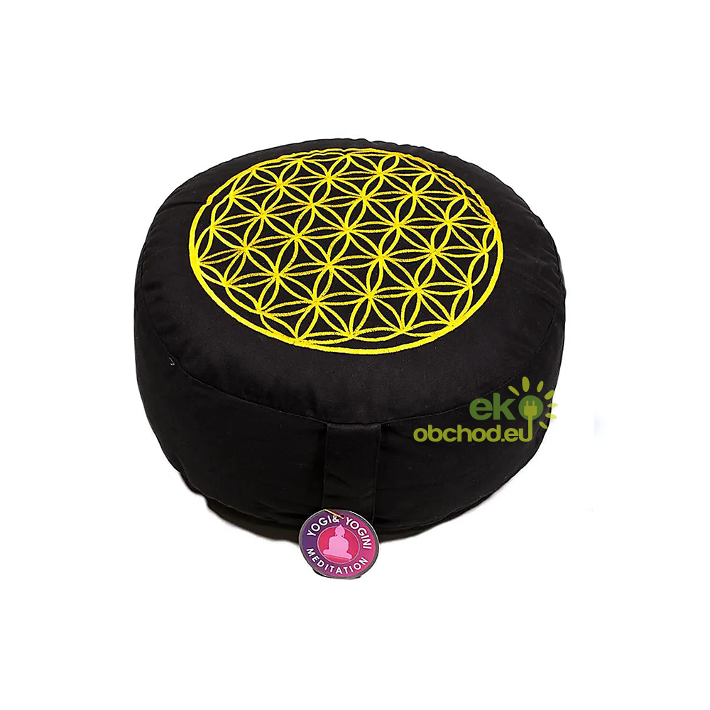 Meditačný vankúš Yogi & Yogini s vyšívaným kvetom života.