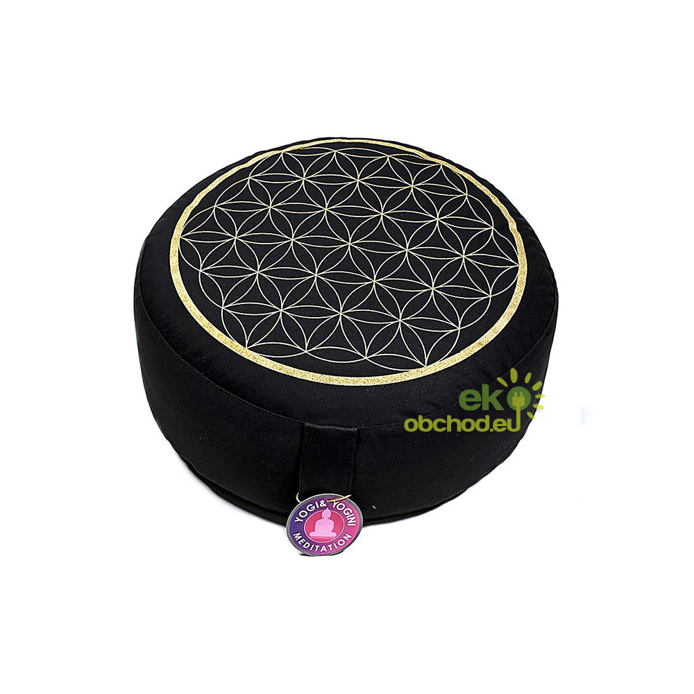 Meditačný vankúš - Kvet života, čierny, zlatá potlač