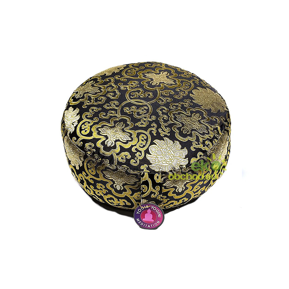 Meditačný vankúš typu zafu s vyšívaným symbolom - tretia čakra.