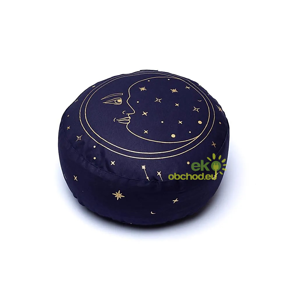Meditačný vankúš - tmavomodrý, dizajn Mesiac, organická bavlna