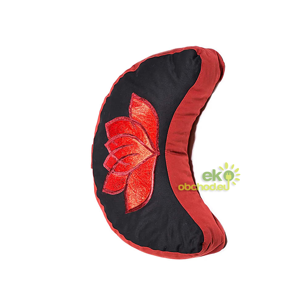 Meditačný vankúš - čierno-červený, dizajn Lotus, bavlna