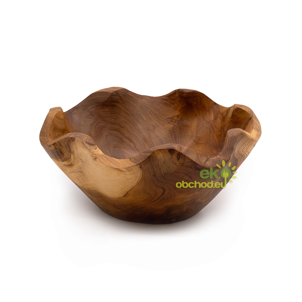 Tieto misky môžu slúžiť samostatne ako pútavý dekoratívny prvok, alebo ako praktický podstavec na jedlo či iné predmety. Teakové drevo vyniká pozoruhodnou odolnosťou, vodotesnosťou a nádhernými prírodnými vzormi, pričom pochádza z udržateľne obhospodarovaných lesov, čo z neho robí ekologicky šetrnú voľbu. Jeho bohaté teplé tóny a jedinečná kresba dodávajú každej mise osobitý charakter, ktorý prináša eleganciu do každého priestoru.