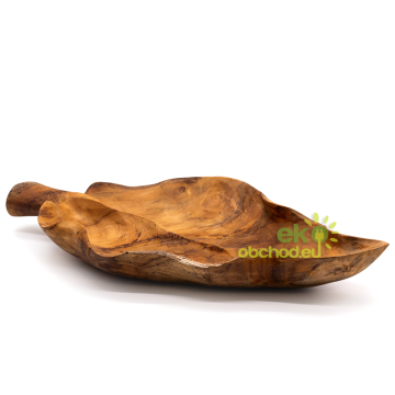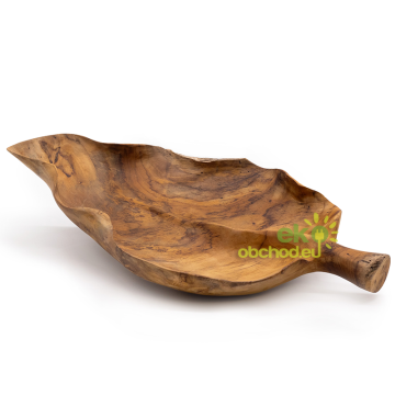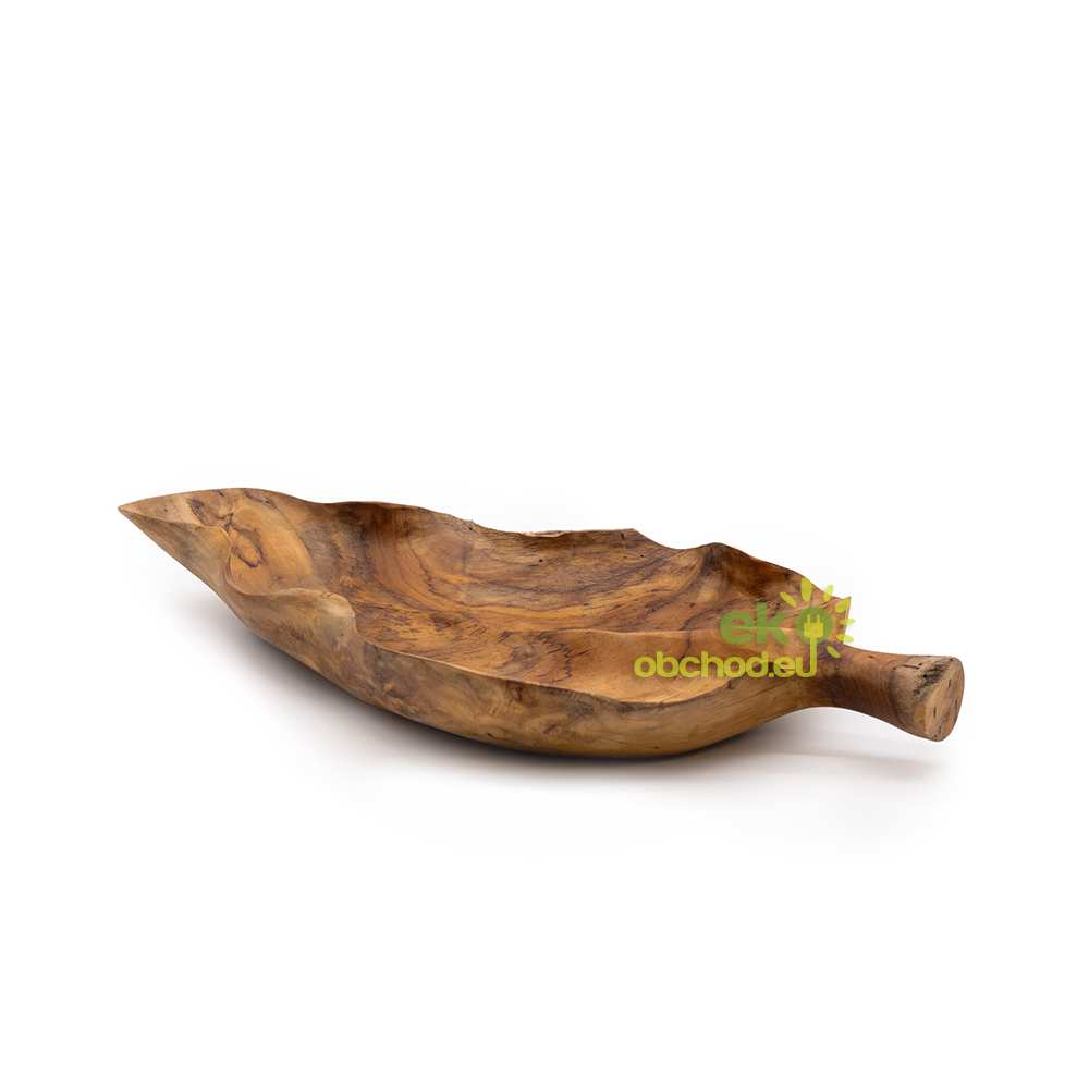 Veľká Misa na Ovocie z Teakového Dreva v Tvare Listu - 40x24x5cm