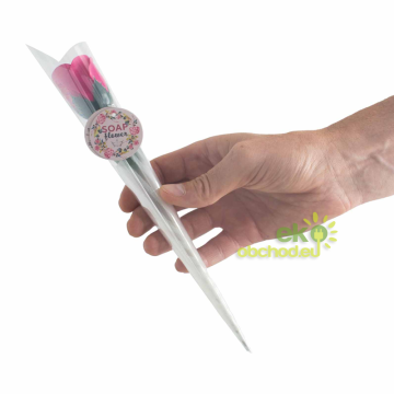 Praktické využitie: Kvety sú vyrobené z kvalitnej mydlovej hmoty. Keď vás kytica ako dekorácia omrzí, môžete lupienky použiť pri relaxačnom kúpeli.