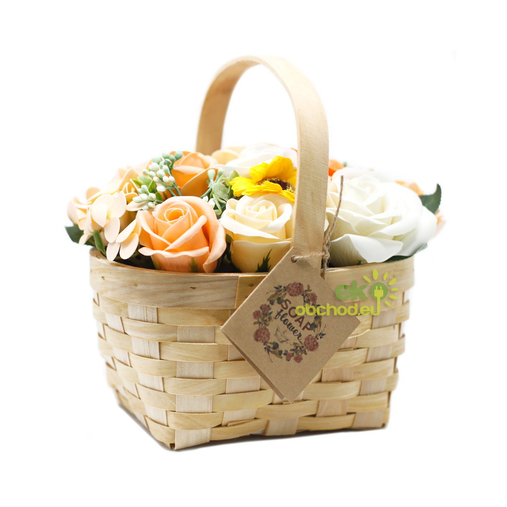Veľká mydlová kytica v prútenom koši - Oranžová