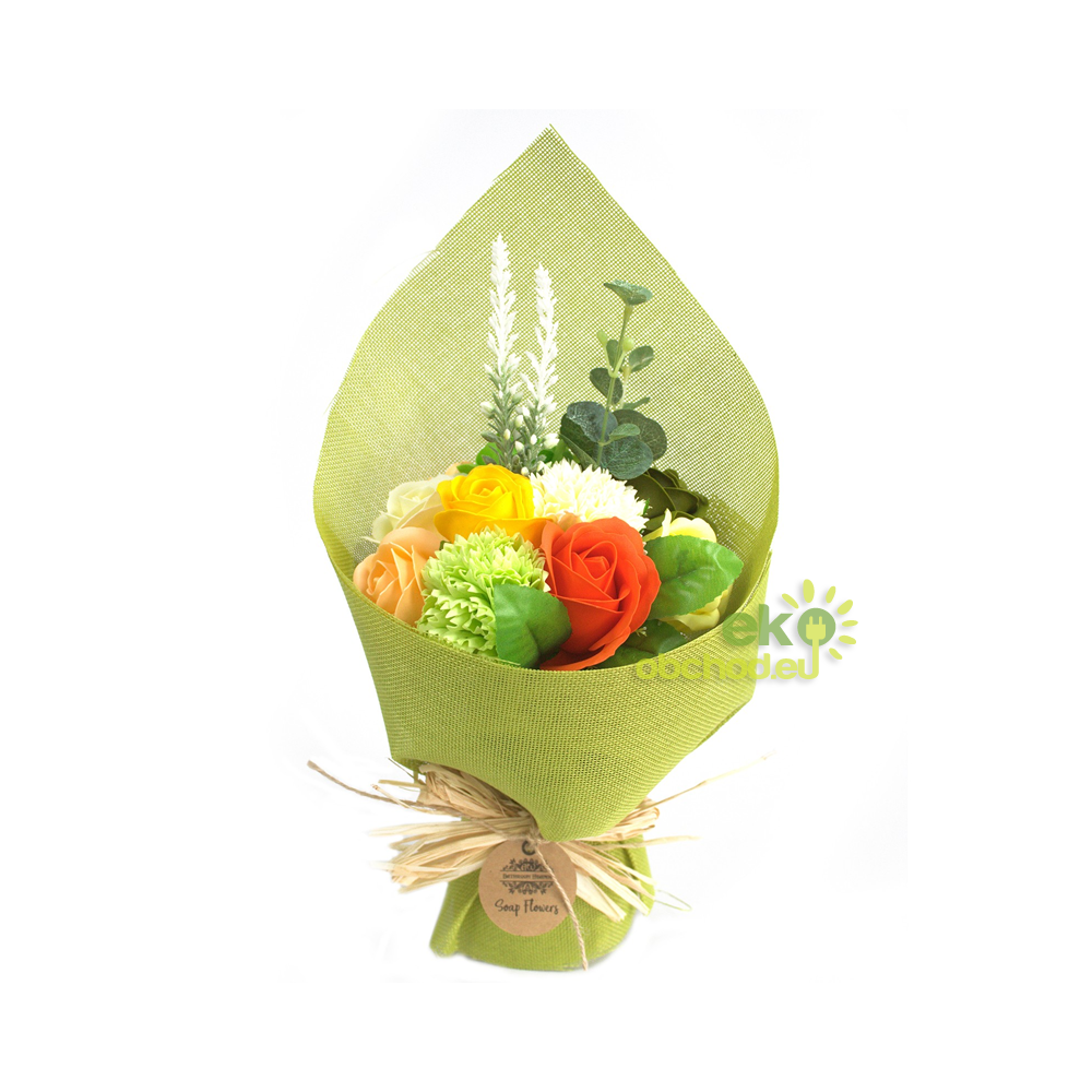 Praktické využitie: Kvety sú vyrobené z kvalitnej mydlovej hmoty. Keď vás kytica ako dekorácia omrzí, môžete lupienky použiť pri relaxačnom kúpeli.