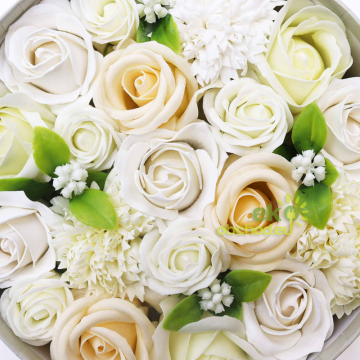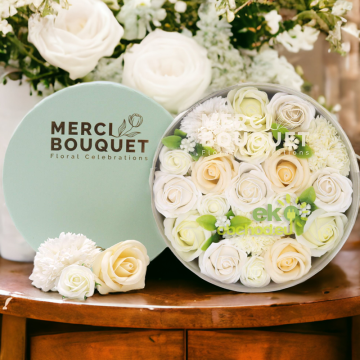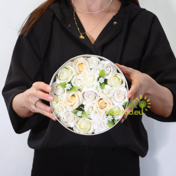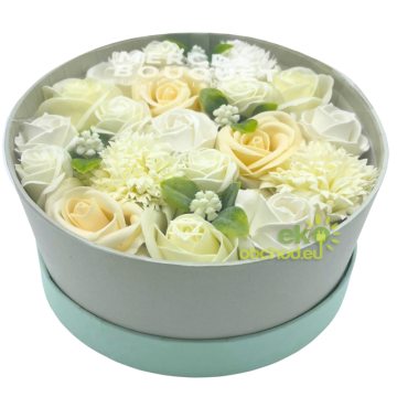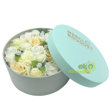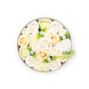 Okrúhly Box - mydlové kvety - Svadba – Biely a Ivory