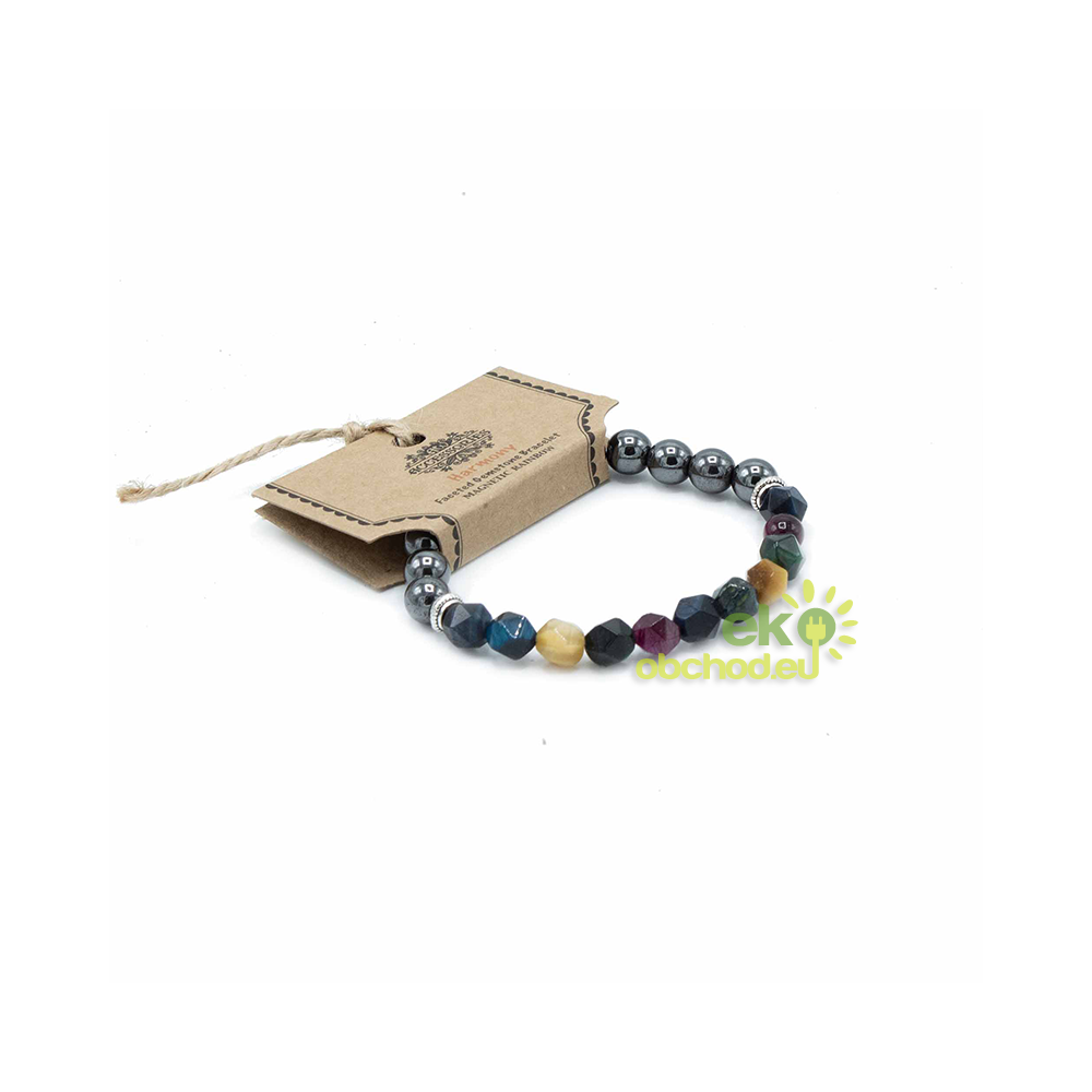 Tento originálny náramok obsahuje malé guľôčky kamienkov, ktoré boli vybrúsené a vyleštené na fazety, ktoré odrážajú svetlo a dodávajú kameňom...