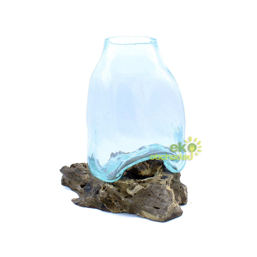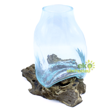 Roztavené sklenené nádoby na dreve sú nový hit, ktorý k nám prichádza z Bali. Ručne vyrábané fúkaním z recyklovaného skla. Ešte horúce sklo sa umiestni na výrez huby a nechá sa zatvrdnúť do tvaru dreva čím sa zaistí jeho dokonalé uchytenie. Každý z týchto výrobkov je jedinečný. Prineste kus prírody do svojho bytu. Prirodzené umelecké dielo, ktoré si jednoducho zamilujete.